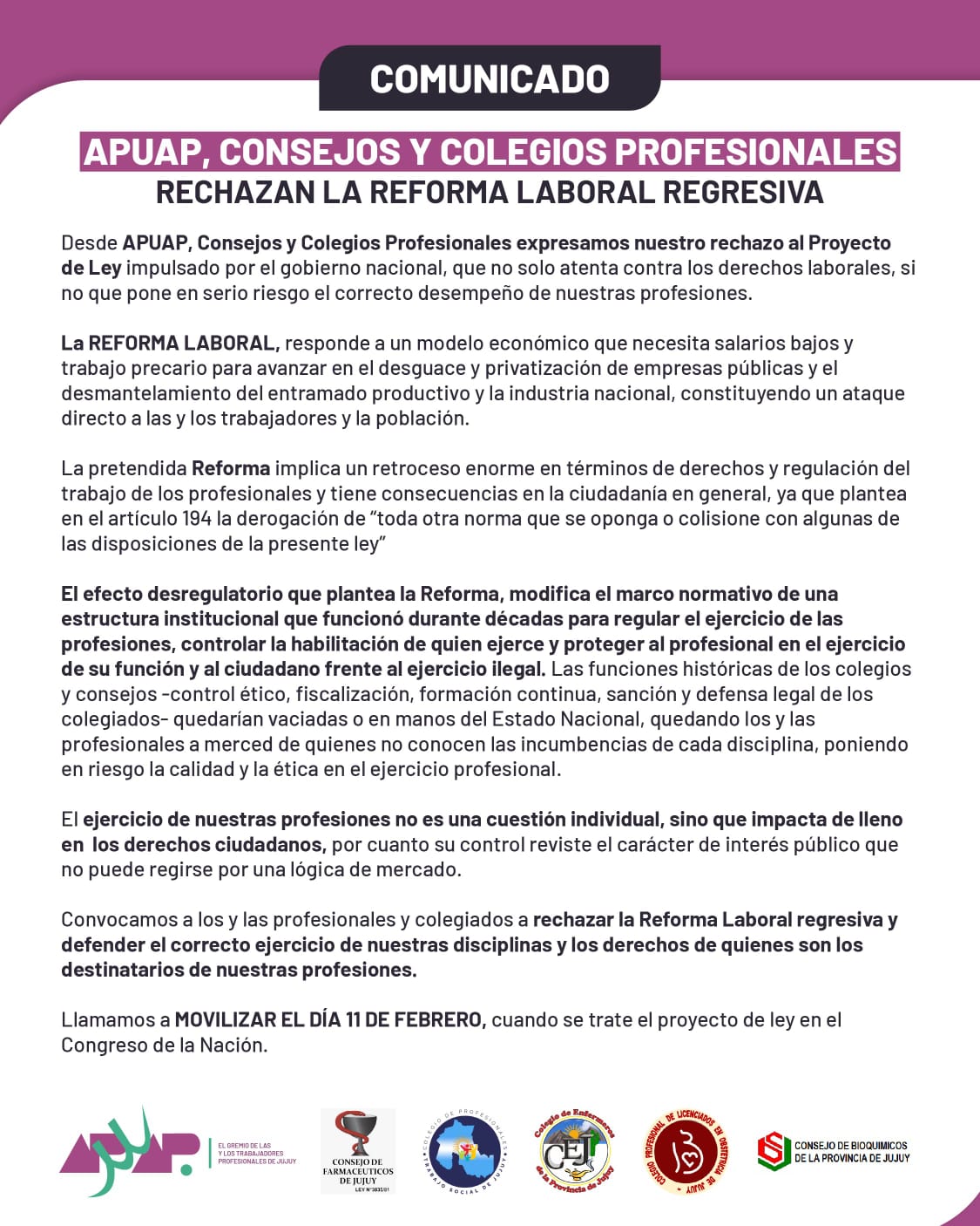 RECHAZAN LA REFORMA LABORAL REGRESIVA